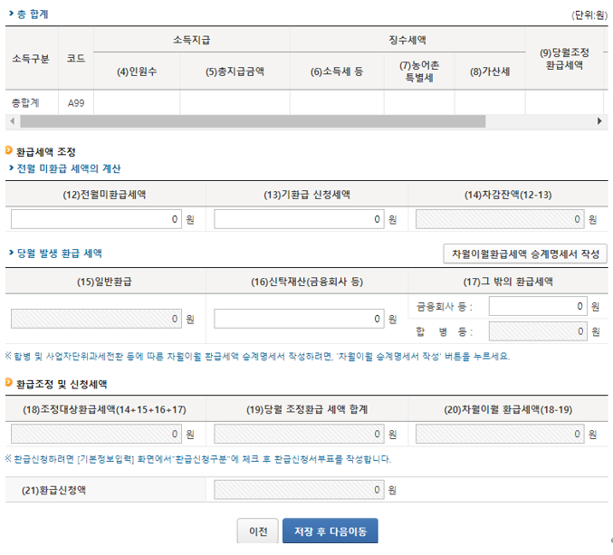 -일괄납부여부 : 예 / 아니오(여기서는 매월 신고하는 걸로 하자)