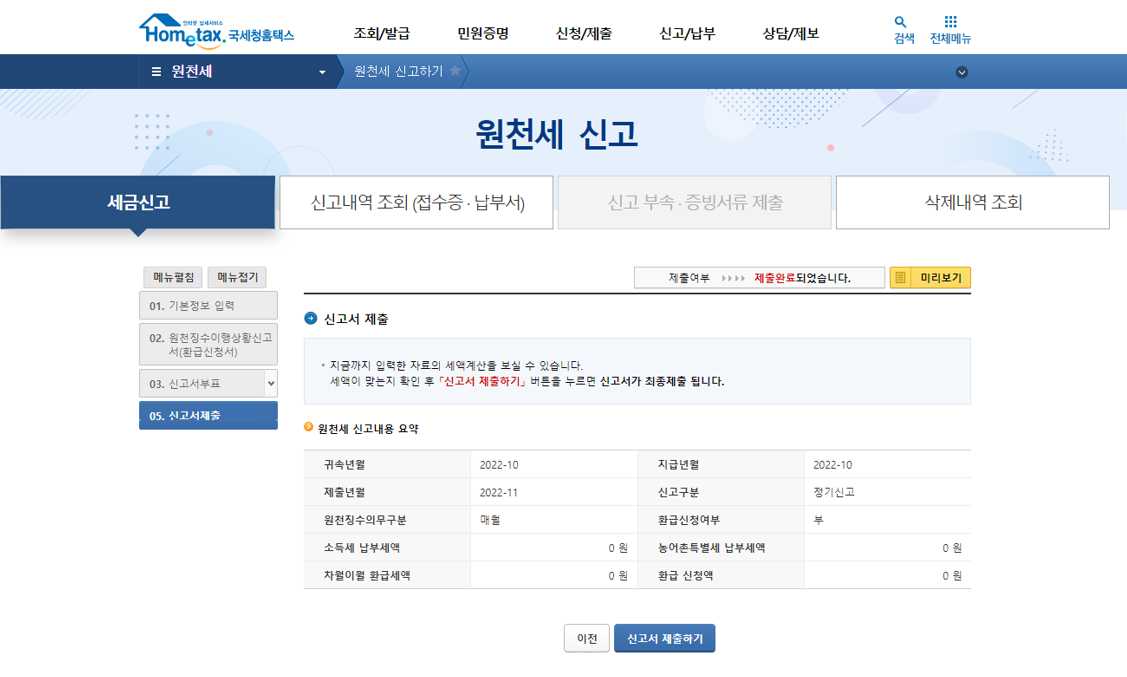입력한 내용이 정확한지 확인 후 신고서 제출하기를 선택한다.