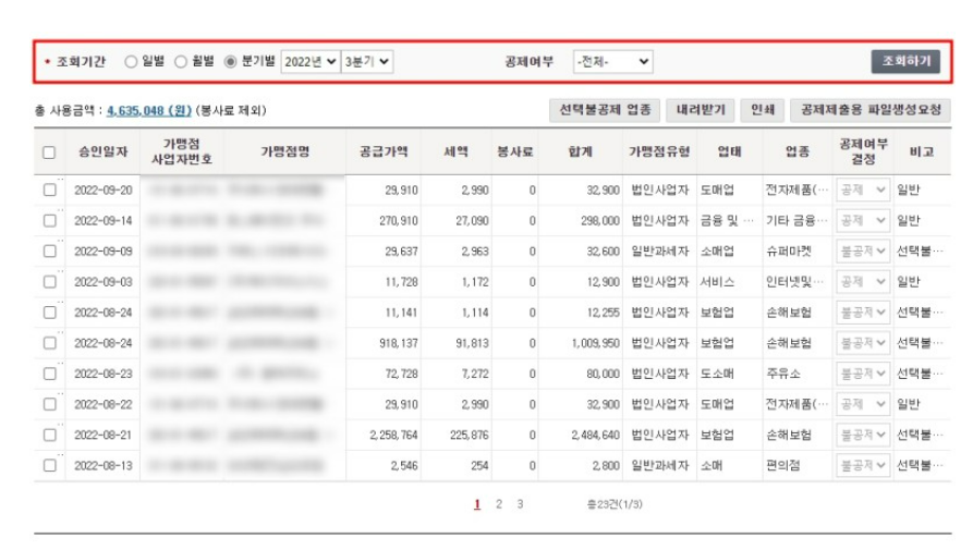 4.신용카드 사용처에 대해 부가세 포함, 상대 사업자 과세유형을 알 수 있다.