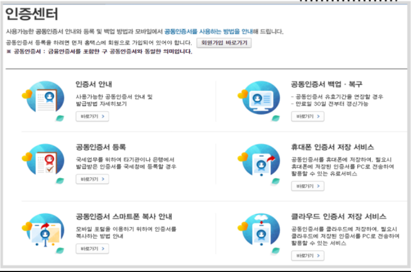 인증서 등록 – 발급된 인증서를 국세청 홈택스 인증센터에 등록.