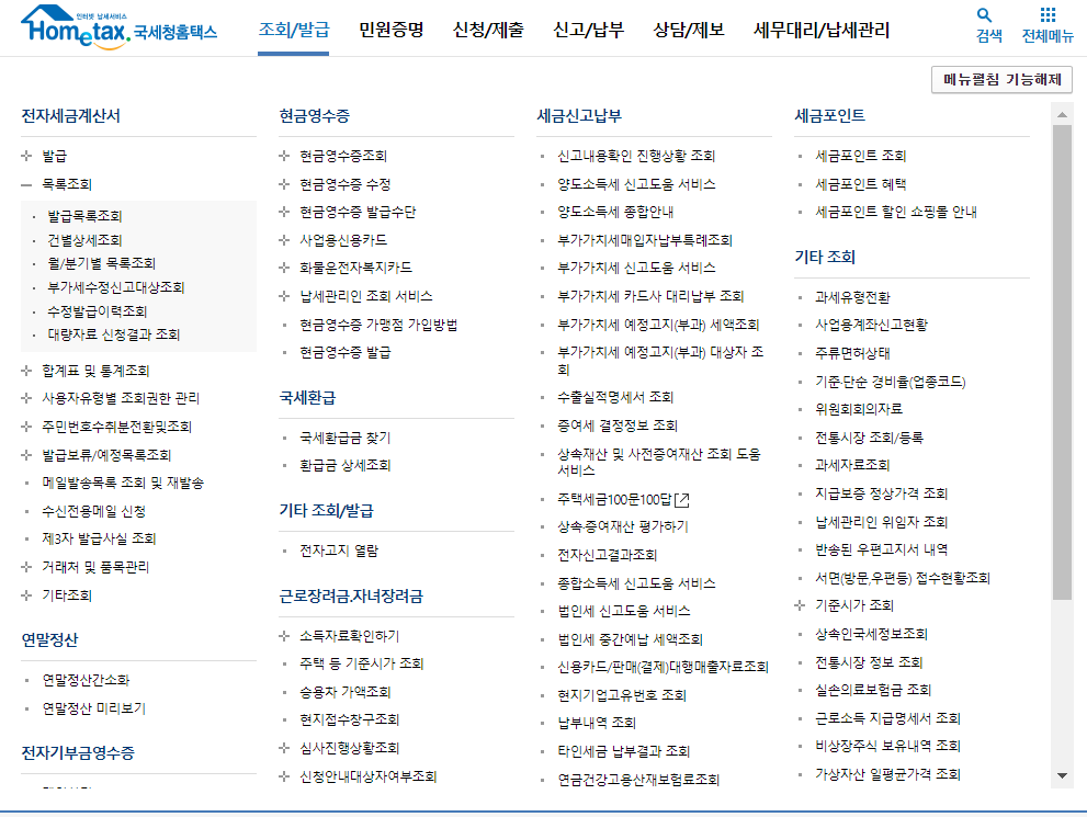 전자세금계산서 홈택스 발행 및 내역 조회