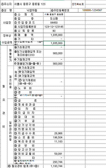 [총수입금액 및 필요경비명세서] 작성이 어렵나?